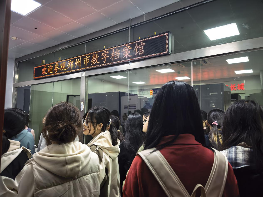 在档案馆工作人员的引导下,师生们依次走进查阅大厅、数字机房、档案库房与“郑州记忆”主题展厅。“过去只在课本里读到的‘全宗’‘著录’,今天终于见到了它们真实的样子!”郑大一名大二学生兴奋地表示,“尤其是在恒温恒湿的库房里,看到一排排密集架和珍贵的原始档案,那种历史的厚重感和我们肩上的责任一下子就清晰了。”